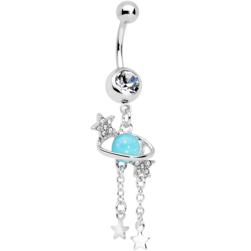Clear Blue Gem Saturn Stars Dangle Belly Ring