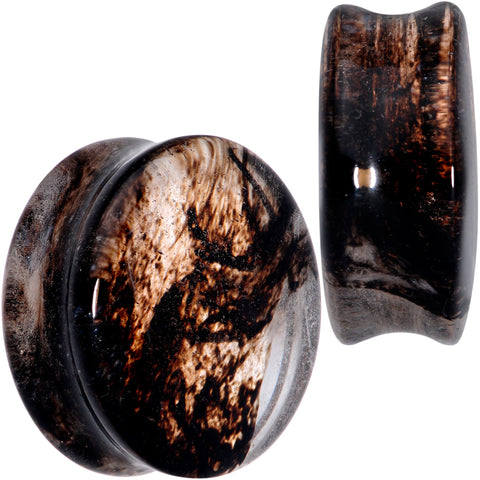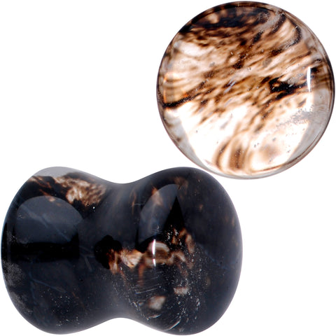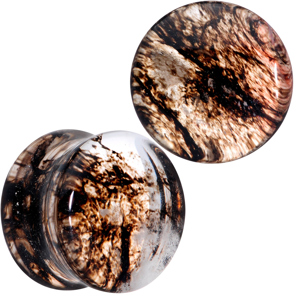 Rock a bohemian style without any rocks at all with these nature-styled plugs! These ear gauges are made with clear glass, set with filaments of brown color throughout for a look that catches the eye and keeps it! They're also made with a saddle-style design for easier insertion and removal. Whether you're a happy hippie or just want some truly gorgeous and comfortable jewelry for your stretched lobes, these saddle plugs rock! Sold as a set of two.Specifications