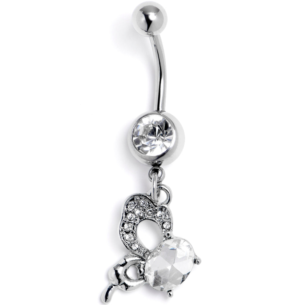 Clear CZ Gem Abstract Style Butterfly Dangle Belly Ring