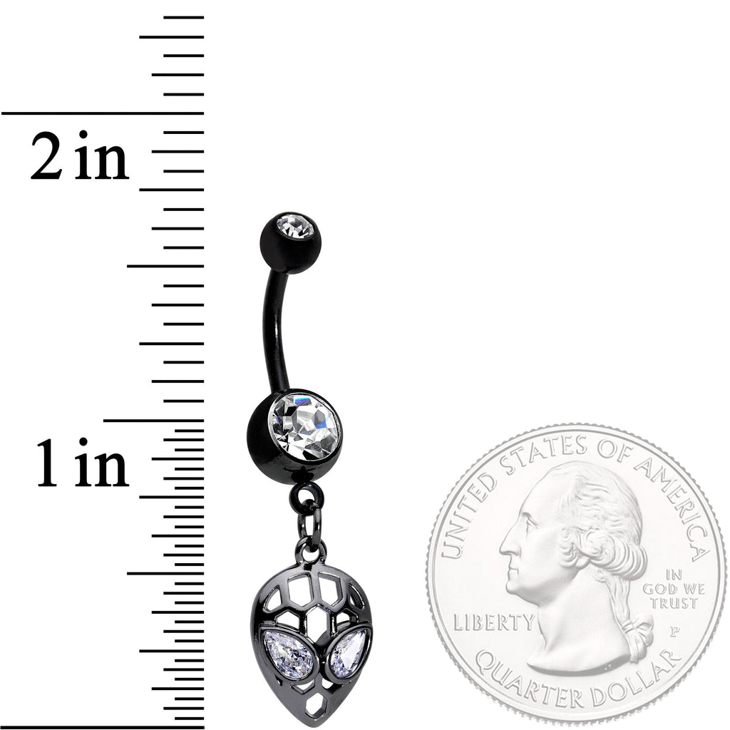 Clear CZ Gem Black Openwork Alien Dangle Belly Ring