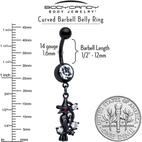 Clear CZ Gem Black Raven Witch Dangle Belly Ring
