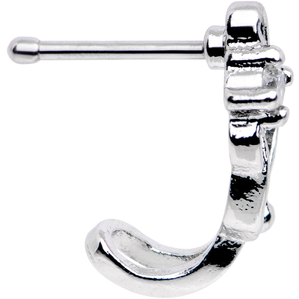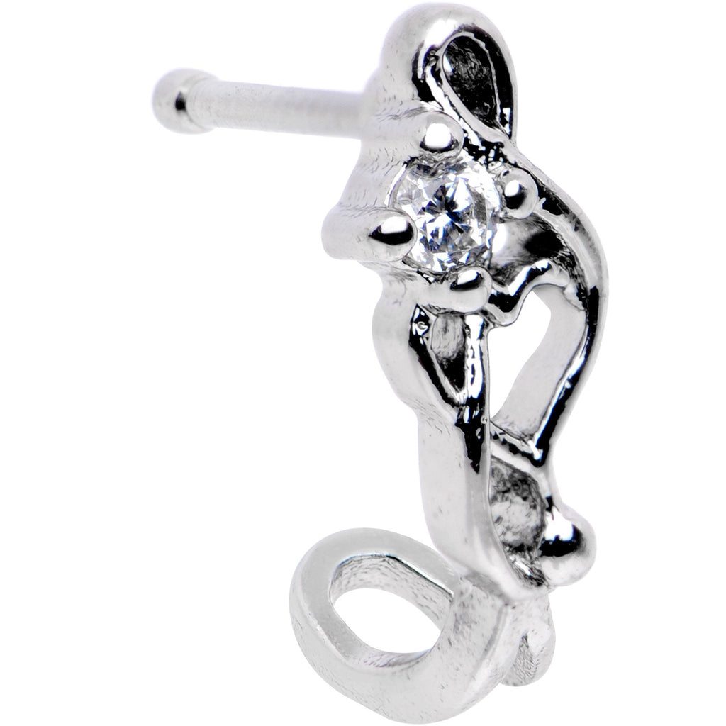 Embrace a lovely look for your nose piercing when you wear this nose ring that looks like a hoop! Made with a 1/4" length durable 316L surgical grade stainless steel post, this nostril piercing features a fashion twist charm set with a clear cubic zirconia gem on a half hoop that wraps around the nose and sits outside of your nostril to give the illusion of a hoop in your regular (pierced!) piercing without actually wearing one at all. Try something new; this interesting nose jewelry may be right for you!
