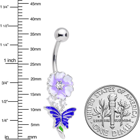 Clear CZ Gem Flower Blue Butterfly Belly Ring