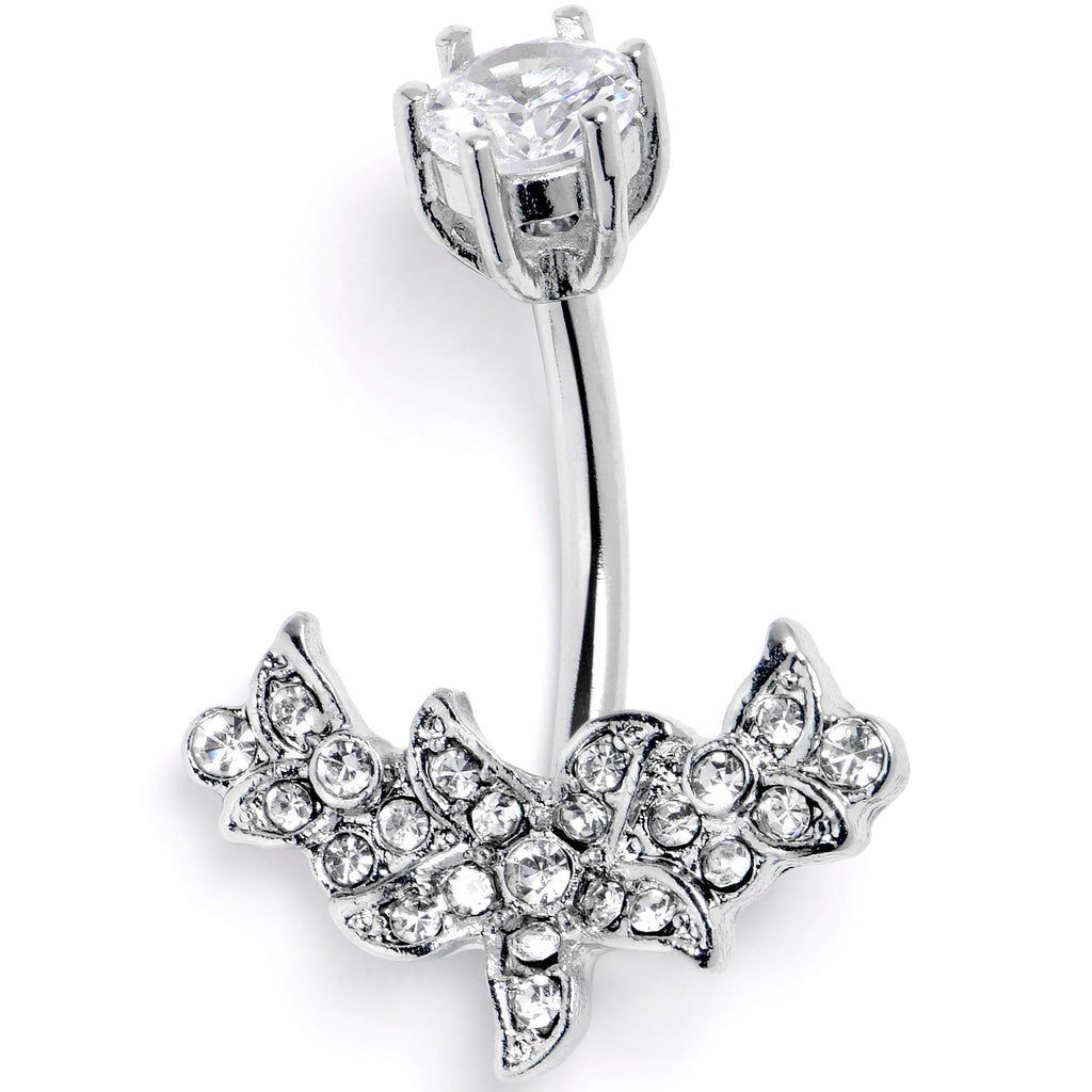 Clear CZ Gem Flower Garland Double Mount Belly Ring