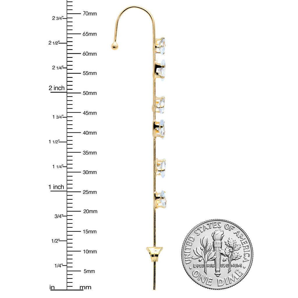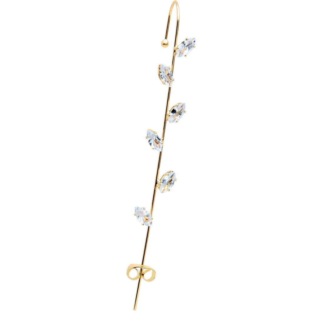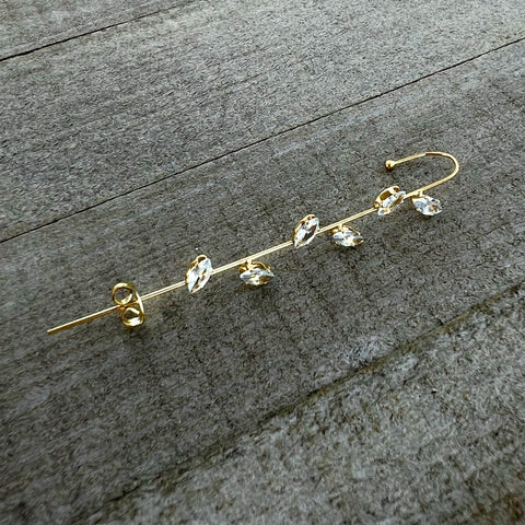 Clear CZ Gem Gold Tone Leafy Vine Ear Cuff Bar Earring