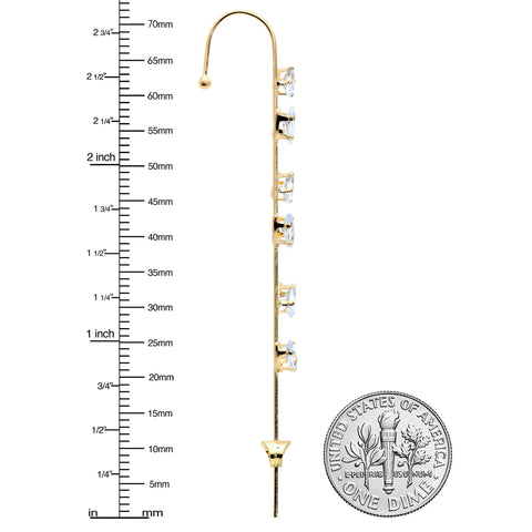 2.51" (64mm) Length, Gold Tone Anodized over 316L Surgical Grade Stainless Steel, Cubic Zirconia, For Pierced Ear Lobe