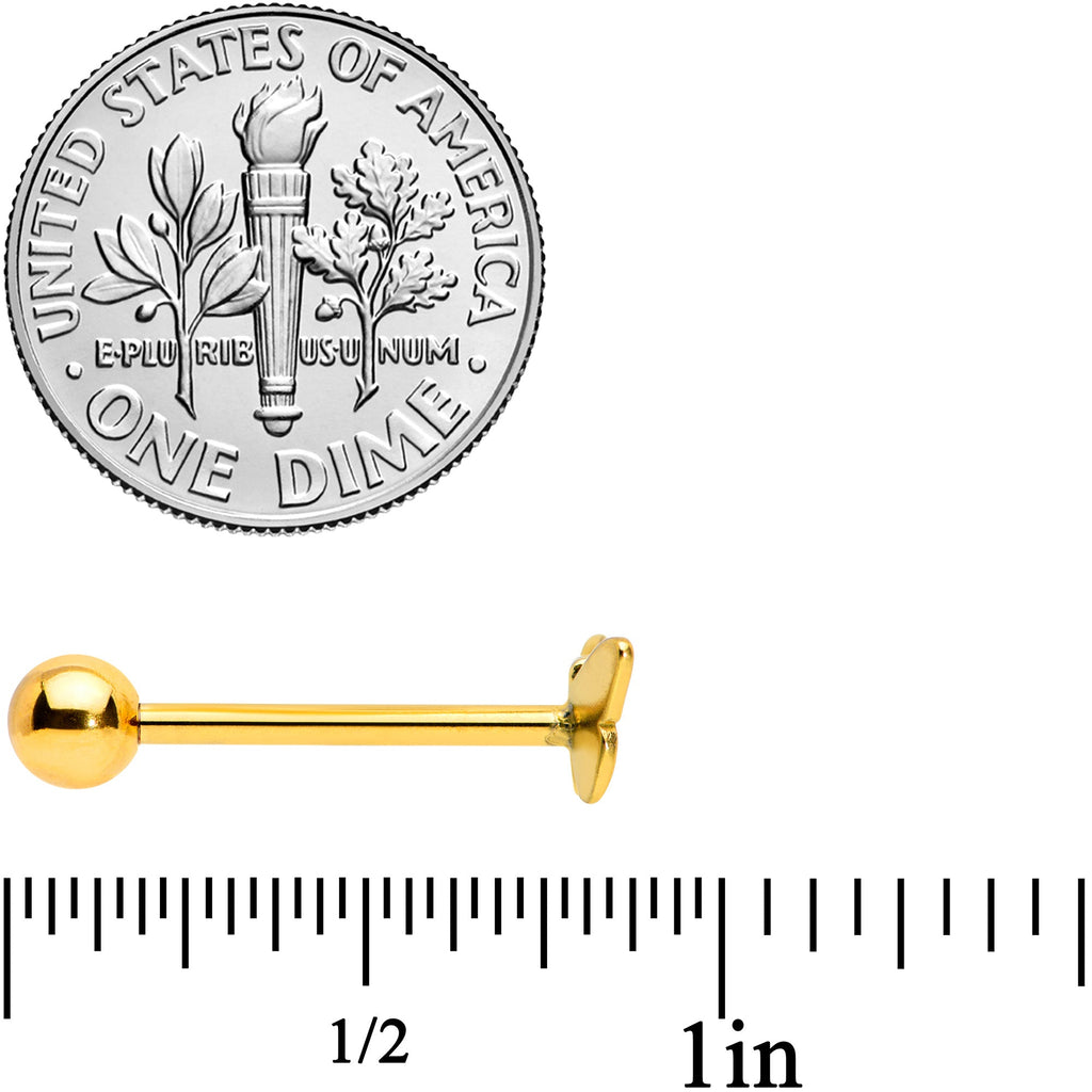 The butterfly on this 14 gauge tongue jewelry is anything but basic! It's made with a 5/8" gold tone PVD over 316L surgical grade stainless steel straight barbell with a 5mm bottom ball end. The top end features a butterfly charm, with openwork wings spread wide. The butterfly is embellished with clear cubic zirconia gems along the body as well. This butterfly is bound to be a beloved part of your jewelry wardrobe with this elegant tongue piercing ring!