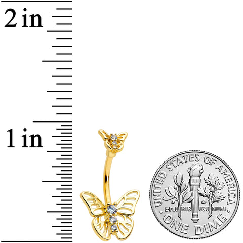 Clear CZ Gem Gold Tone Open Butterfly Double Mount Belly Ring