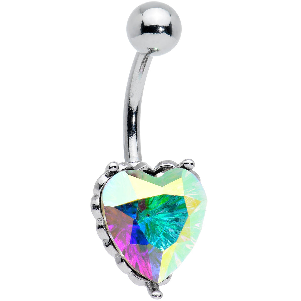 Clear CZ Gem Great Big Heart Valentines Day Belly Ring
