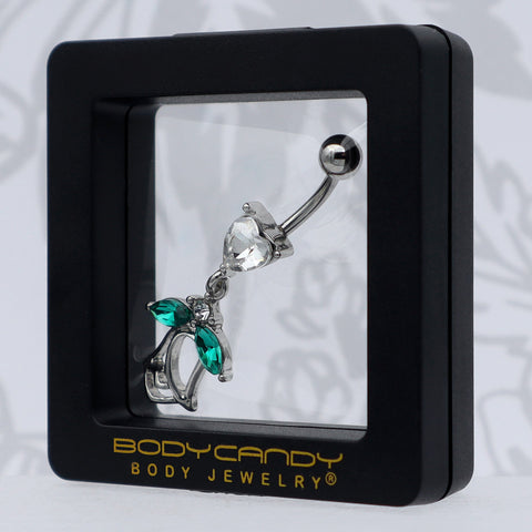 Clear CZ Gem Heart And Rose Dangle Belly Ring