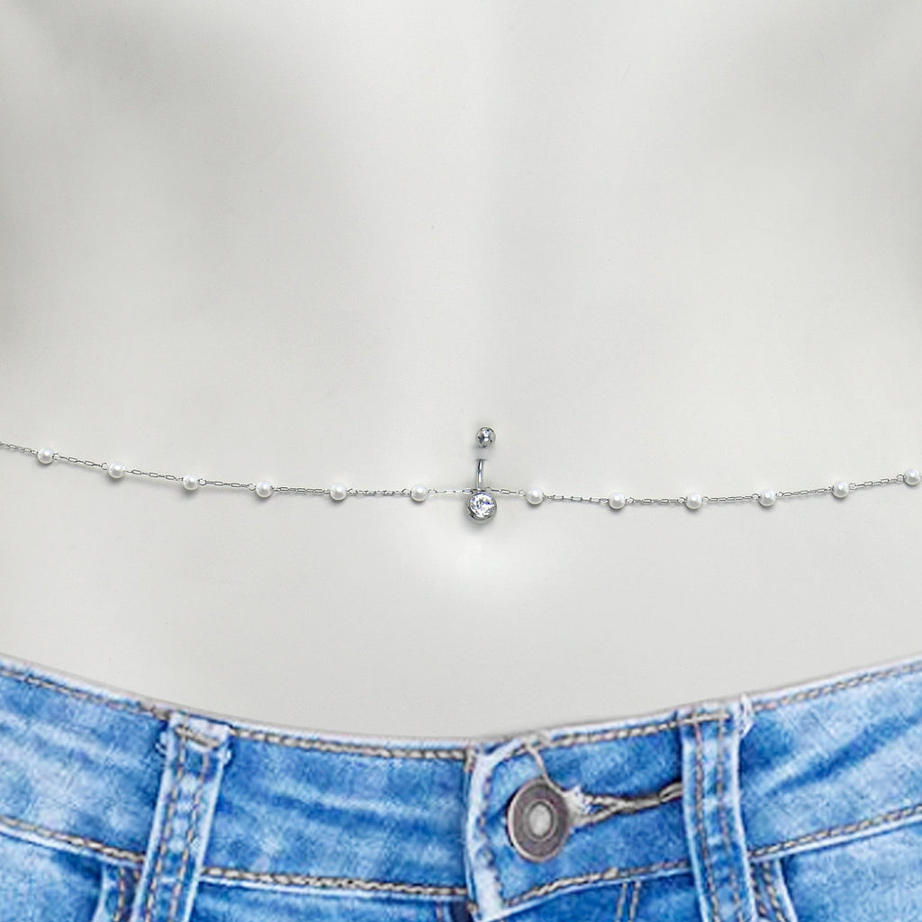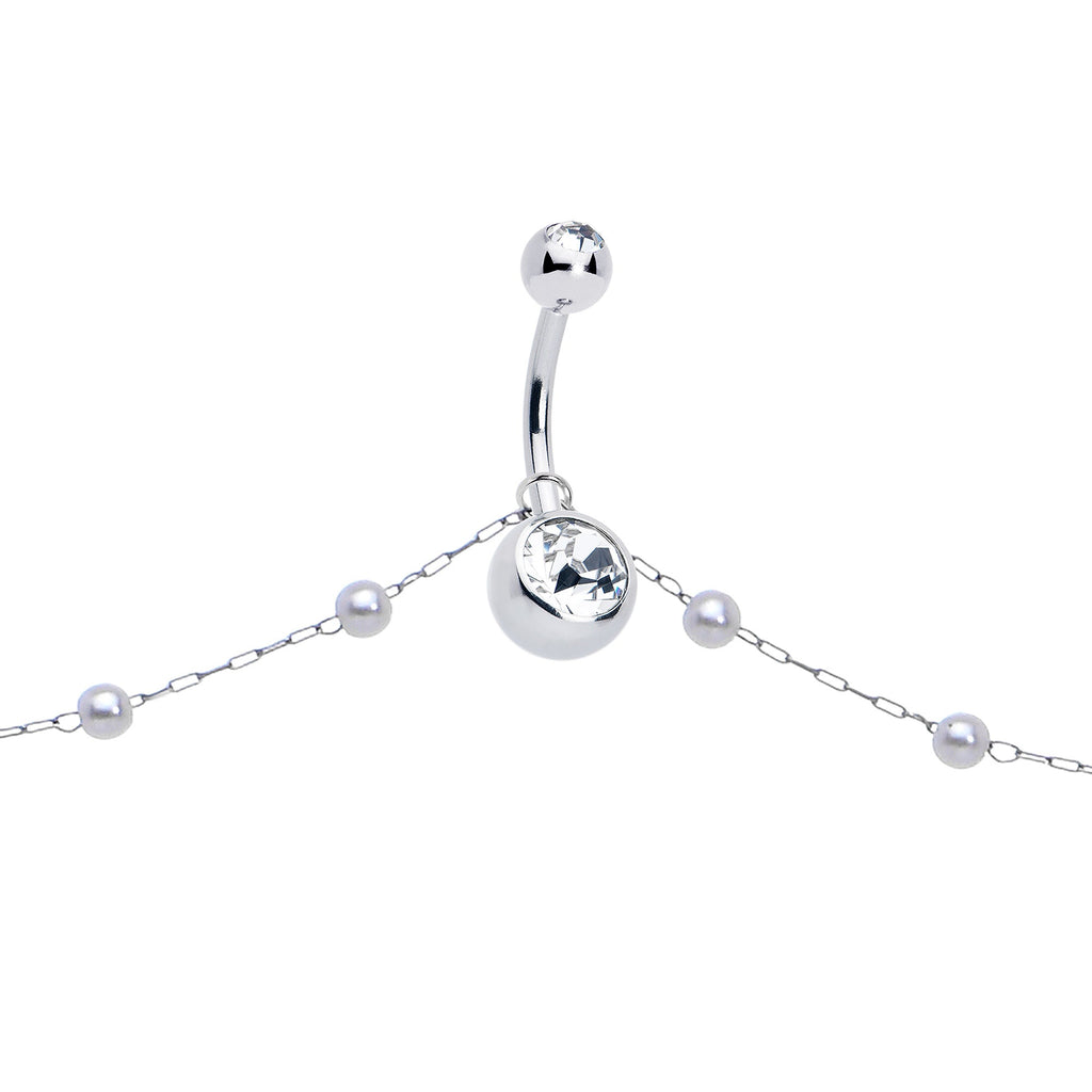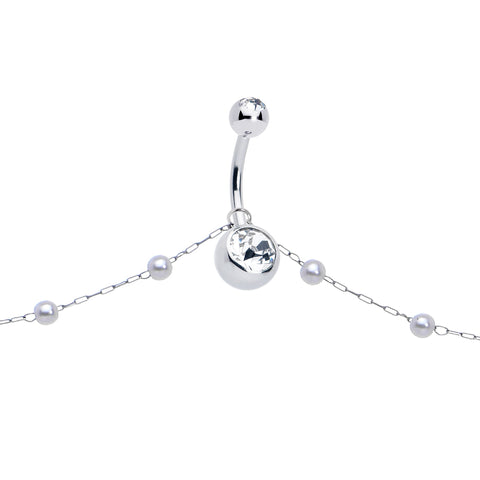 Clear CZ Gem Innocent Glam Faux Pearl Belly Ring Belly Chain