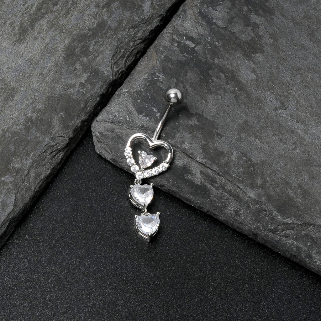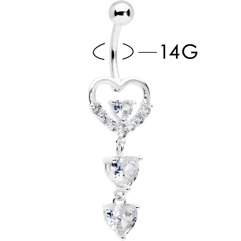 Clear CZ Gem Opulent Heart Quartet Dangle Belly Ring