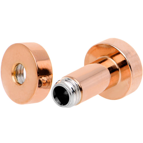 Add a little bling bling to your stretched lobes whenever you wear this pair of pretty double flare plugs. Made with rose gold PVD over 316L surgical grade stainless steel, these ear gauges feature a clear cubic zirconia gem encrusted rim to catch the eye of your beholder. This pair of plugs is made with a screw fit design for easier insertion and removal and is sold as a set of two. NOTE: Prices of plugs may vary based on plug ear gauge size selected from drop down. Specifications