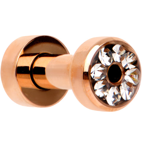 Clear CZ Gem Rose Gold PVD Bling Screw Fit Tunnel Plug Set 3mm to 16mm