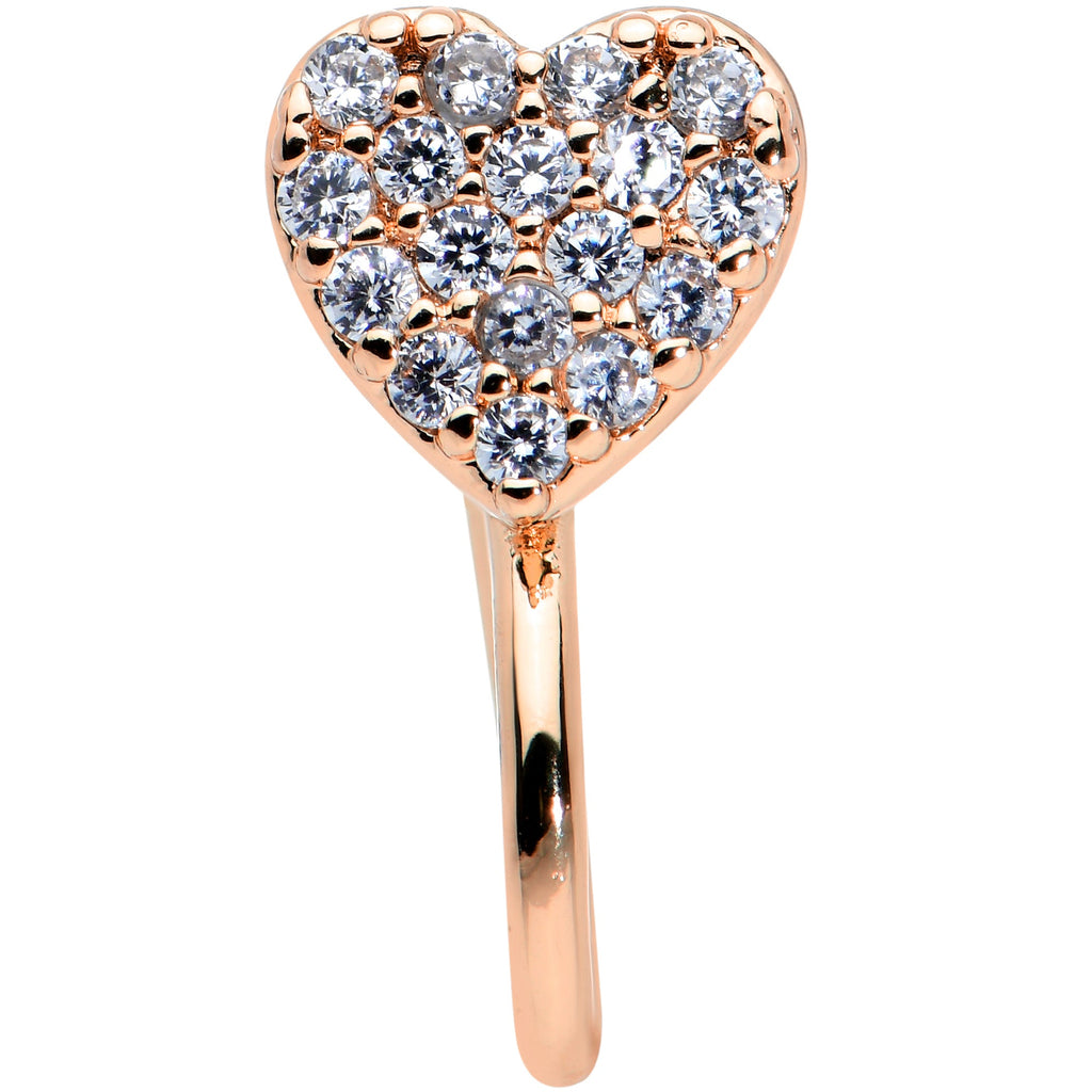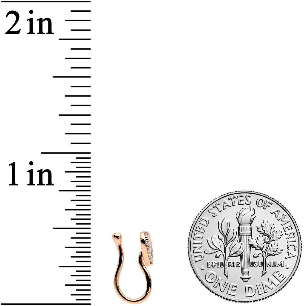 Clear CZ Gem Rose Gold Tone Paved Heart Valentines Clip On Nose Ring