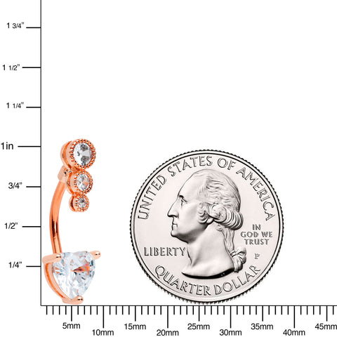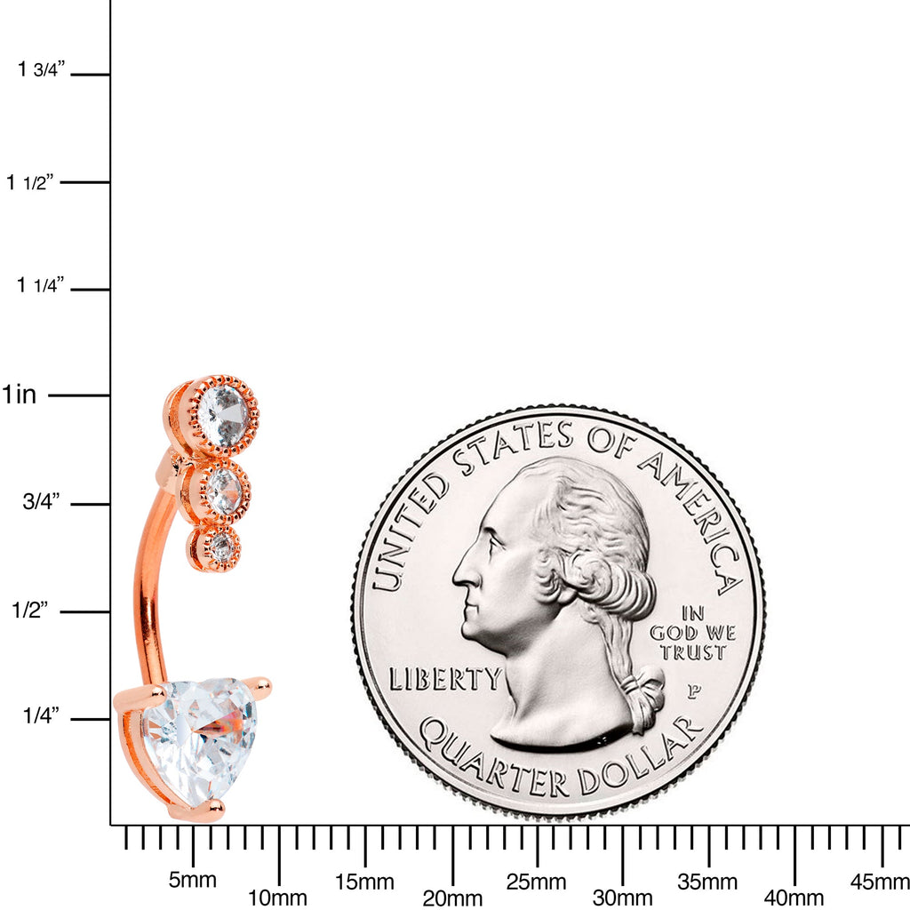 Clear CZ Gem Rose Gold Tone Triple Drop Heart Belly Ring