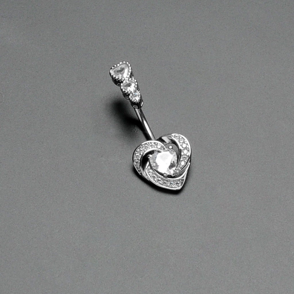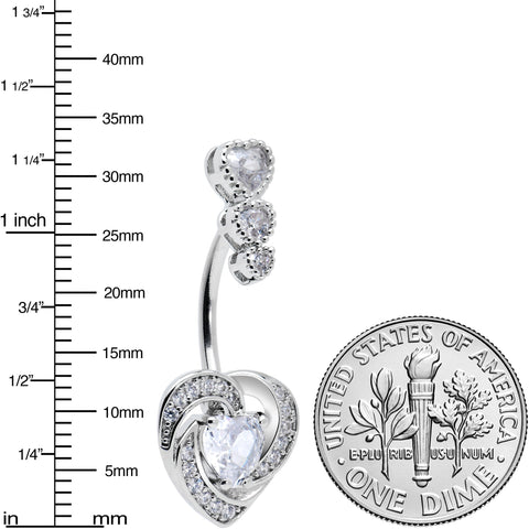 Clear CZ Gem Triple Drop Swirl Heart Valentine Double Mount Belly Ring