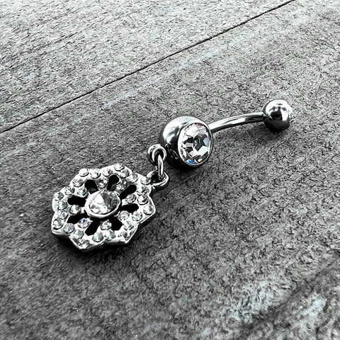 Clear Gem Baroque Fabulous Flower Dangle Belly Ring