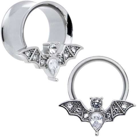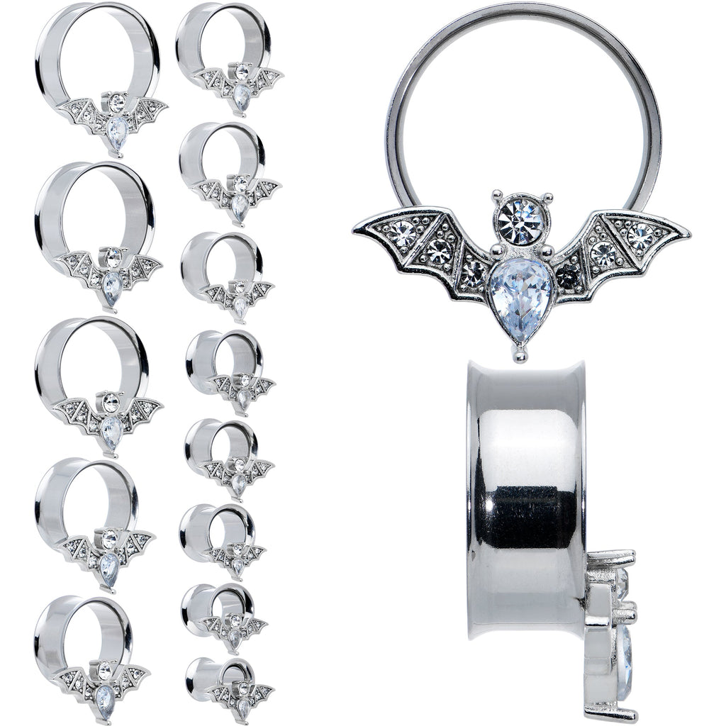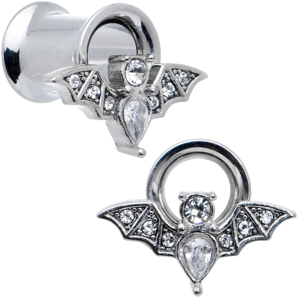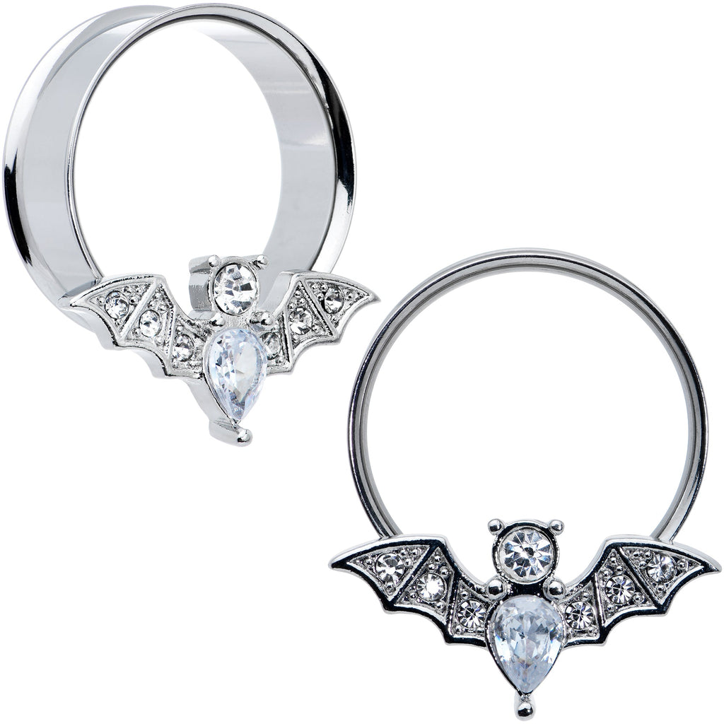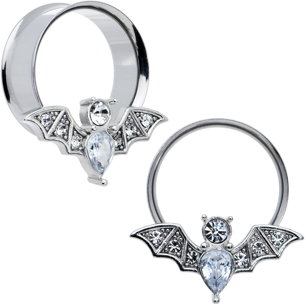 Clear Gem Bat Halloween Double Flare Tunnel Plug Set