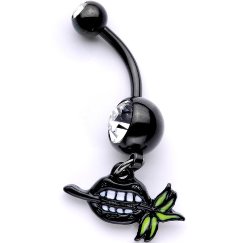 Clear Gem Black Anodized Black Lips of Death Dangle Belly Ring
