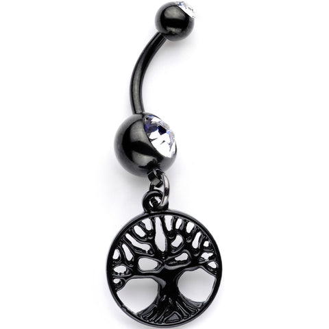 Clear Gem Black Anodized Tree of Life Charm Dangle Belly Ring