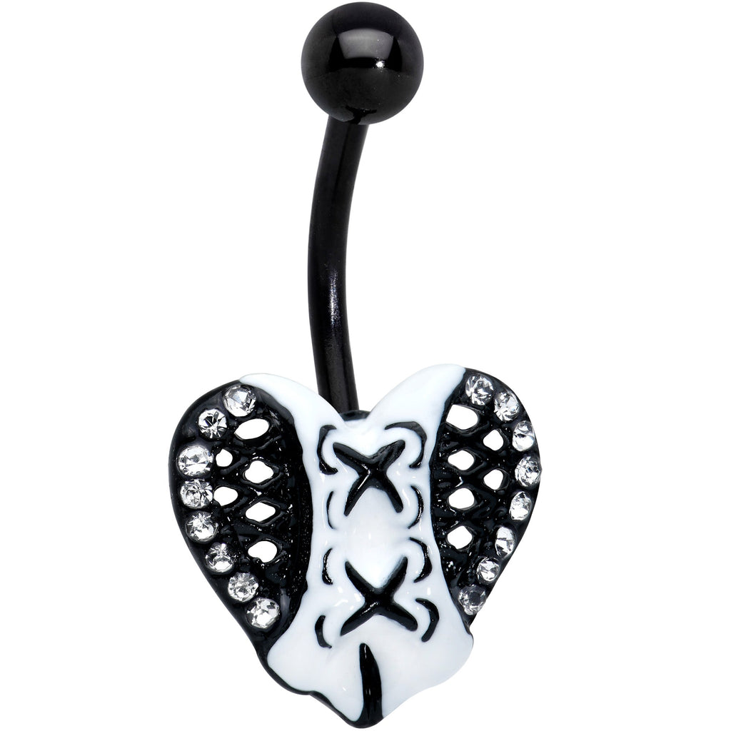 Clear Gem Black White Corset Heart Valentines Day Belly Ring