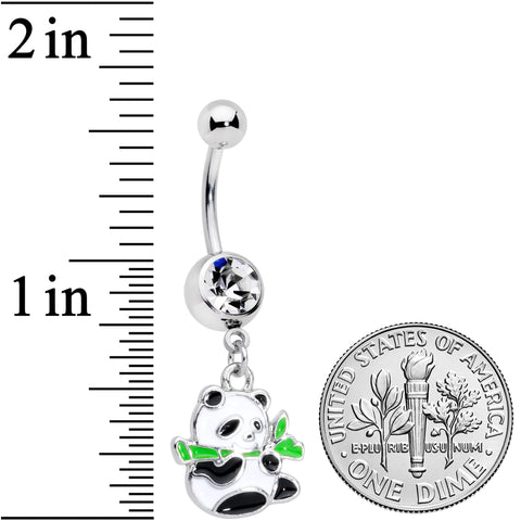 Clear Gem Black White Hungry Panda Bear Dangle Belly Ring