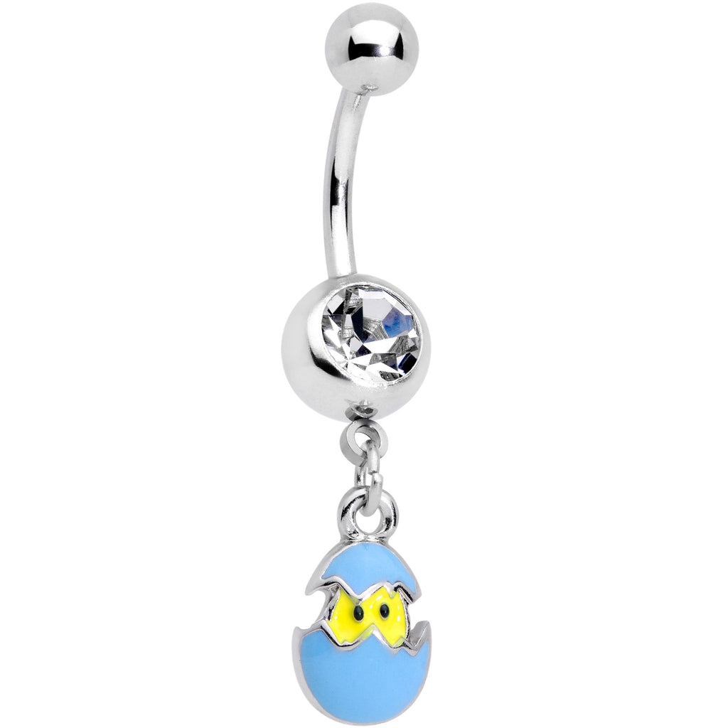 Clear Gem Blue Easter Egg Chick Dangle Belly Ring