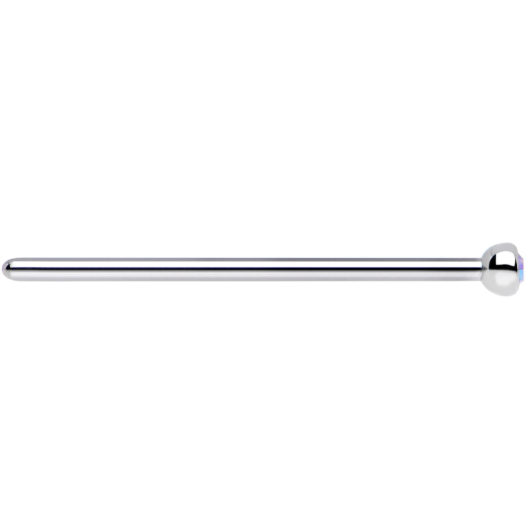 Add some glamour with a cubic zirconia straight fishtail nose ring, recommended by piercing professionals and designed to be custom bent for a perfect fit every time. The nose ring is a timeless and classic nose jewelry item, and this 18 gauge straight nose ring features a sparkling aurora 2.5mm press fit CZ set in a 19mm barbell made of safe, durable stainless steel.