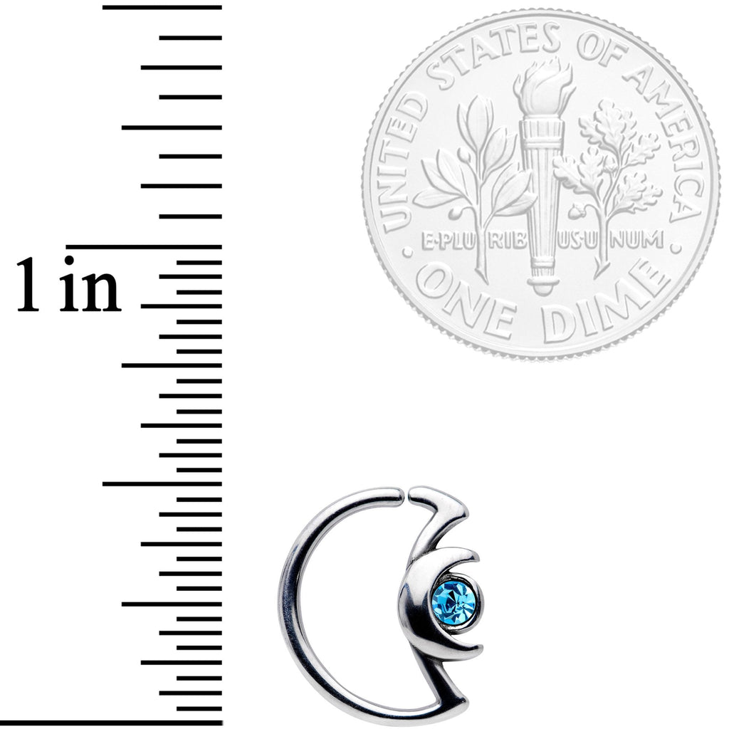 18G 3/8 Aqua Gem Crescent Moon Closure Ring