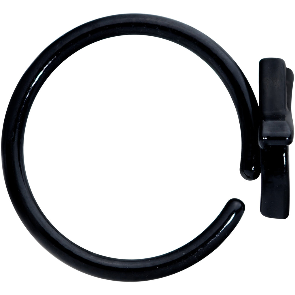 No matter how far you are from the water, you'll still be the first one on the boat with this 18 gauge nostril ring! It's made with a 10mm black PVD over 316L surgical grade stainless steel circular ring. It features a blue boat charm, cleverly detailed with a black paddle laid diagonally across it. You can even rock this ring in multiple piercings including rook, tragus and eyebrow piercings. Whether water sports thrill you or you're crazy for canoes and kayaks, this nautical-themed nose piercing ring is sure to make waves!Specifications