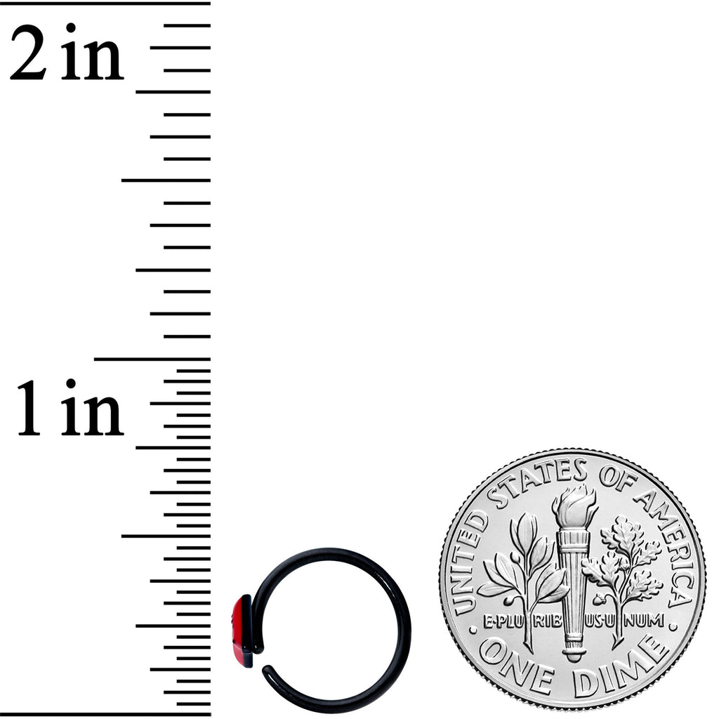 If you're totally over it all, tell the world with this 18 gauge nostril ring! It's made with a 10mm black PVD over 316L surgical grade stainless steel circular ring. It features a red lips charm, realistically detailed in black with visible teeth. The lips seem to be set in a sneer, perfect for when you're feeling fed up with things. You can also rock this ring in multiple piercings including tragus, rook, and eyebrow. If you've had enough but still want to look good, this luscious lips cartilage jewelry is perfect for showing it off.Specifications