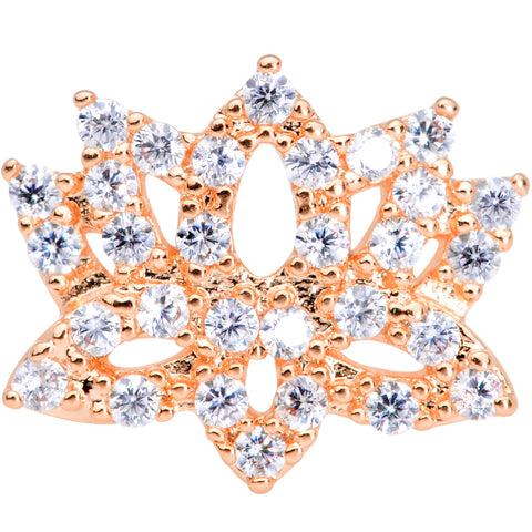 18 Gauge 3/8 Clear CZ Gem Rose Gold Tone Lotus Flower Nose Hoop