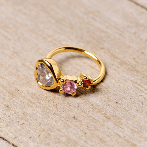 18G 3/8 Clear Pink Red CZ Gem Gold Tone Heart Nose Hoop
