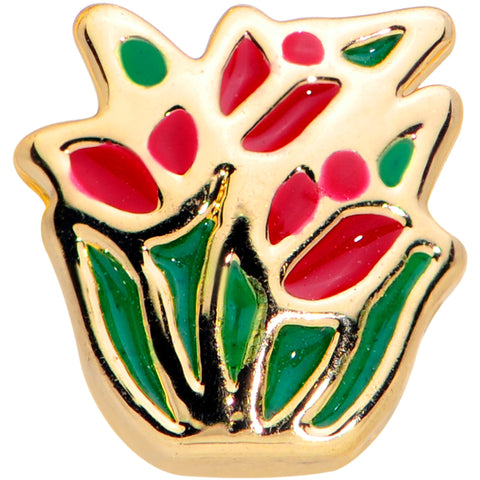 18 Gauge 3/8 Gold Tone Springtime Red Tulip Flowers Nose Hoop