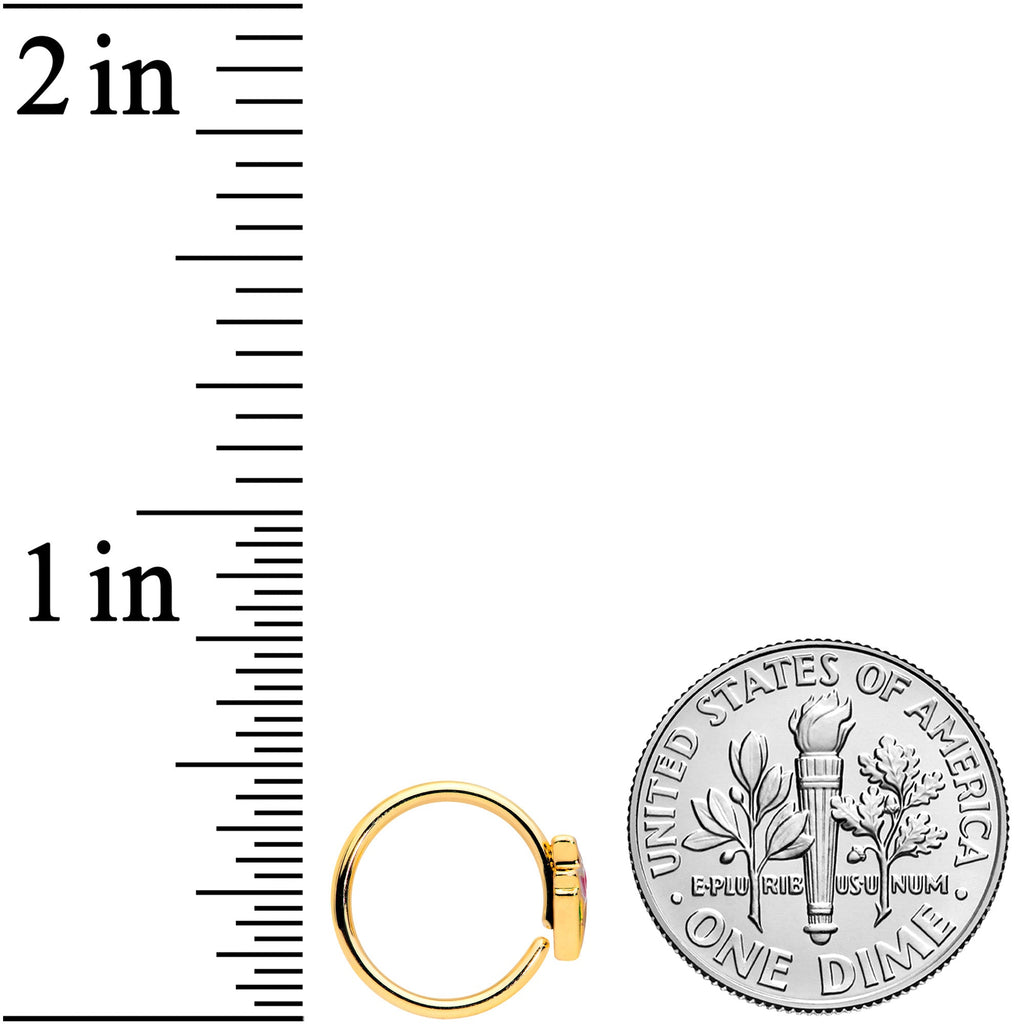 Treat yourself to some Springtime tulips with this 18 gauge nostril ring! It's made with a 10mm gold tone PVD over 316L surgical grade stainless steel circular ring. It features a flower charm of tulips, with the leaves and stems inlaid in deep green and the blossoms inlaid in rich red. You can also flaunt these flowers in multiple piercings including tragus, rook, and eyebrow piercings. Score a sexy and stylish Spring look with this gorgeous floral nose piercing ring!