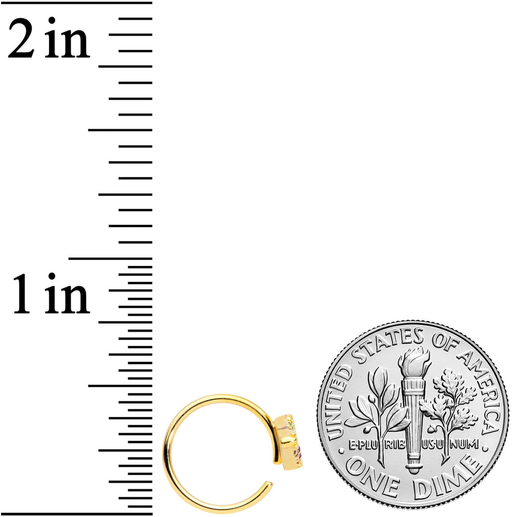 18 Gauge 3/8 Pink Green Gem Gold Tone Triangle Nose Hoop