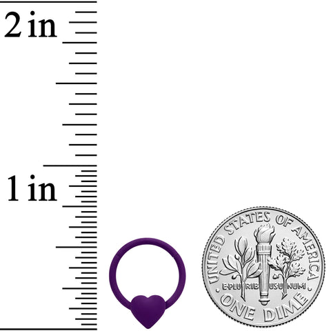 Let your piercings shine when your jewelry doesn't, with this 18 gauge cartilage jewelry! It's made with a 10mm purple matte plated over 316L surgical grade stainless steel hinged circular ring. It's purple and features a matte finish for a subtle appearance. The bottom curve features a small heart charm, in matching matte purple for an added touch of subtle style. It also features a non-removable, hinged segment that makes insertion and removal a snap! You can also wear it in multiple piercings including tragus, helix, and septum piercings. You'll be mad about matte with this passionately purple cartilage ring!