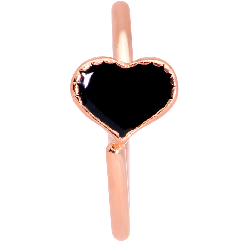 18G 3/8 Rose Gold Tone Black Heart Nose Hoop
