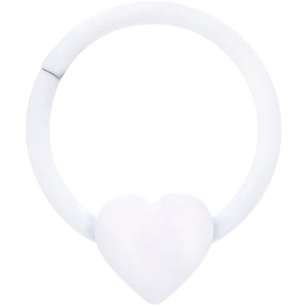 18G 3/8 White Matte Little Heart Hinged Segment Ring