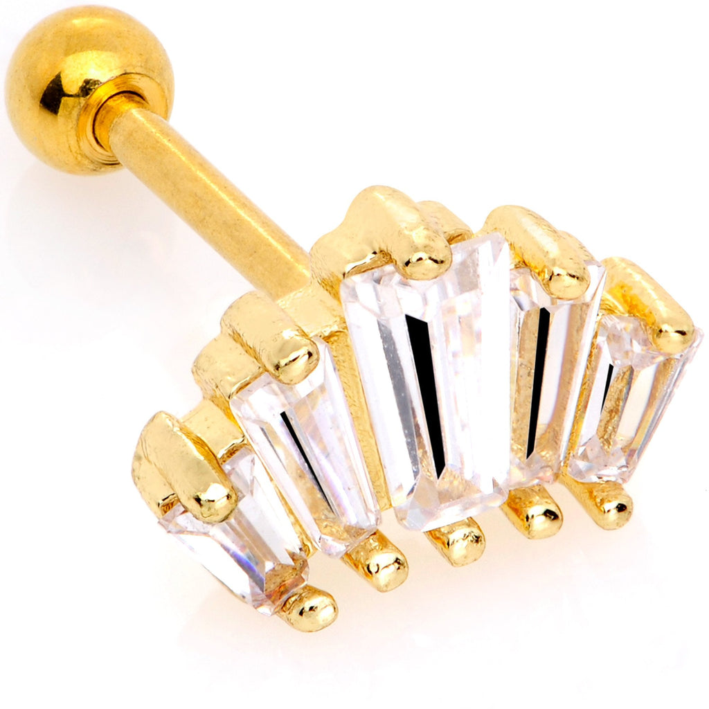 18 Gauge 5/16" Clear CZ Gold Tone Crown Cartilage Tragus Earring