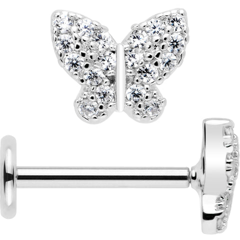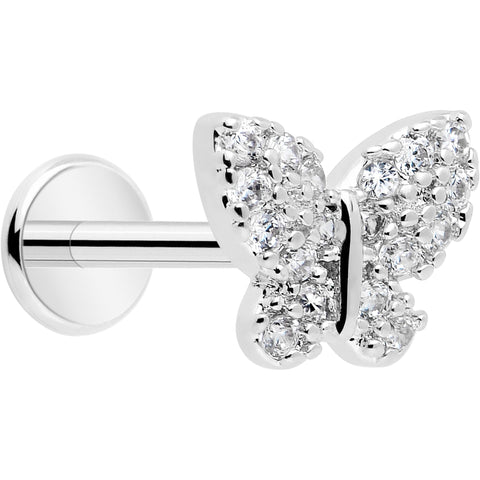 18 Gauge 5/16 CZ Gem Butterfly Paved Threadless Push In Labret Tragus