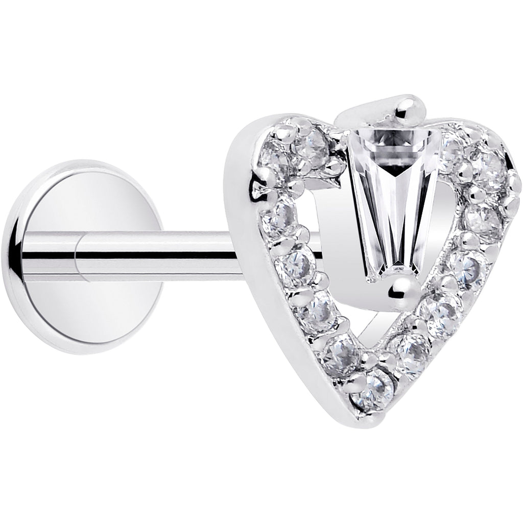 18G 5/16 CZ Gem Heart Threadless Push In Labret Monroe Tragus