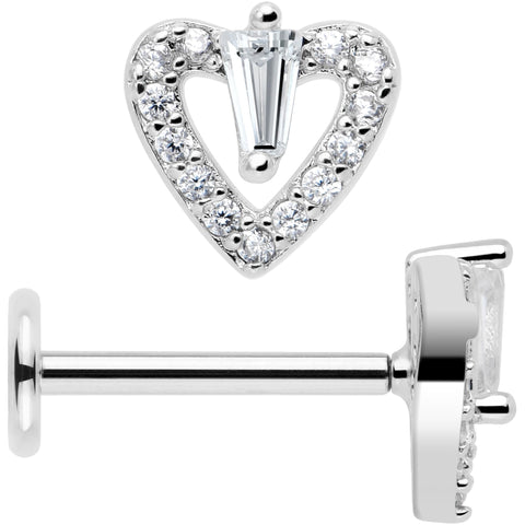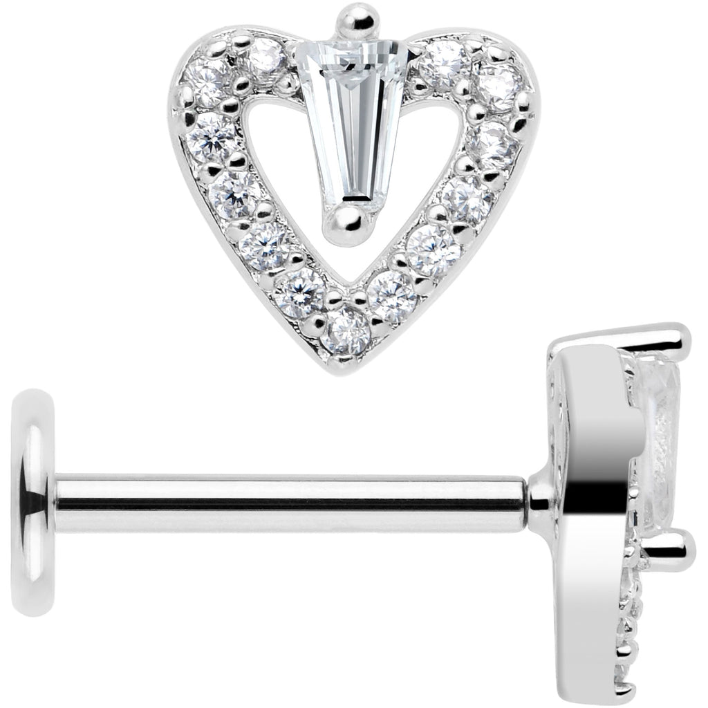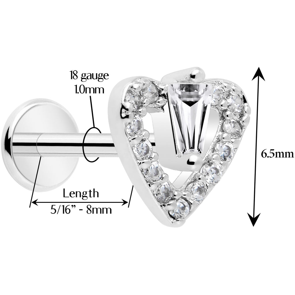 18 Gauge 5/16 CZ Gem Heart Threadless Push In Labret Monroe Tragus