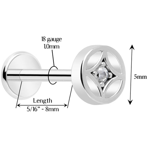 18 Gauge 5/16 CZ Gem Star Threadless Push In Labret Monroe Tragus