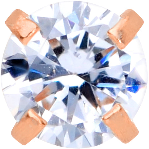 18 Gauge 5/16 CZ Rose Gold PVD 3mm Threadless Push In Labret Tragus