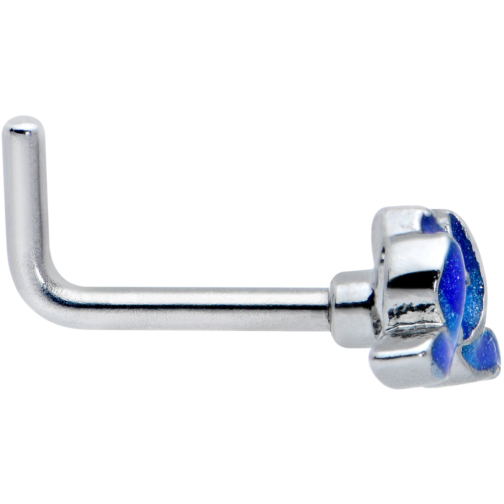 18 Gauge 5/16 Lovely Blue Lotus Flower L Shape Nose Ring