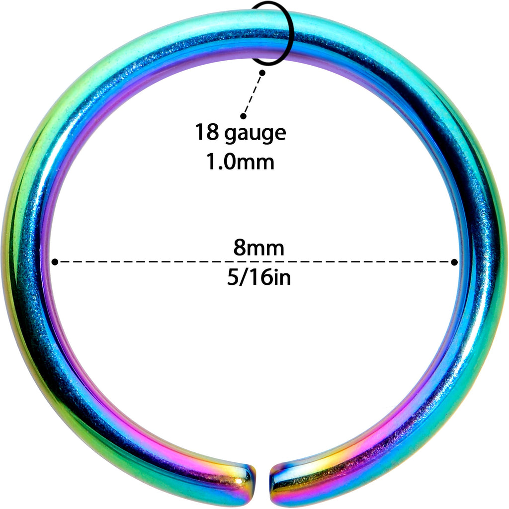 18 Gauge (1mm), 5/16" (8mm), Rainbow PVD over Solid Grade 23 Implant Grade Titanium Circular Ring (Ti-6AL4V-ELi ASTM F-136), Rounded Ends