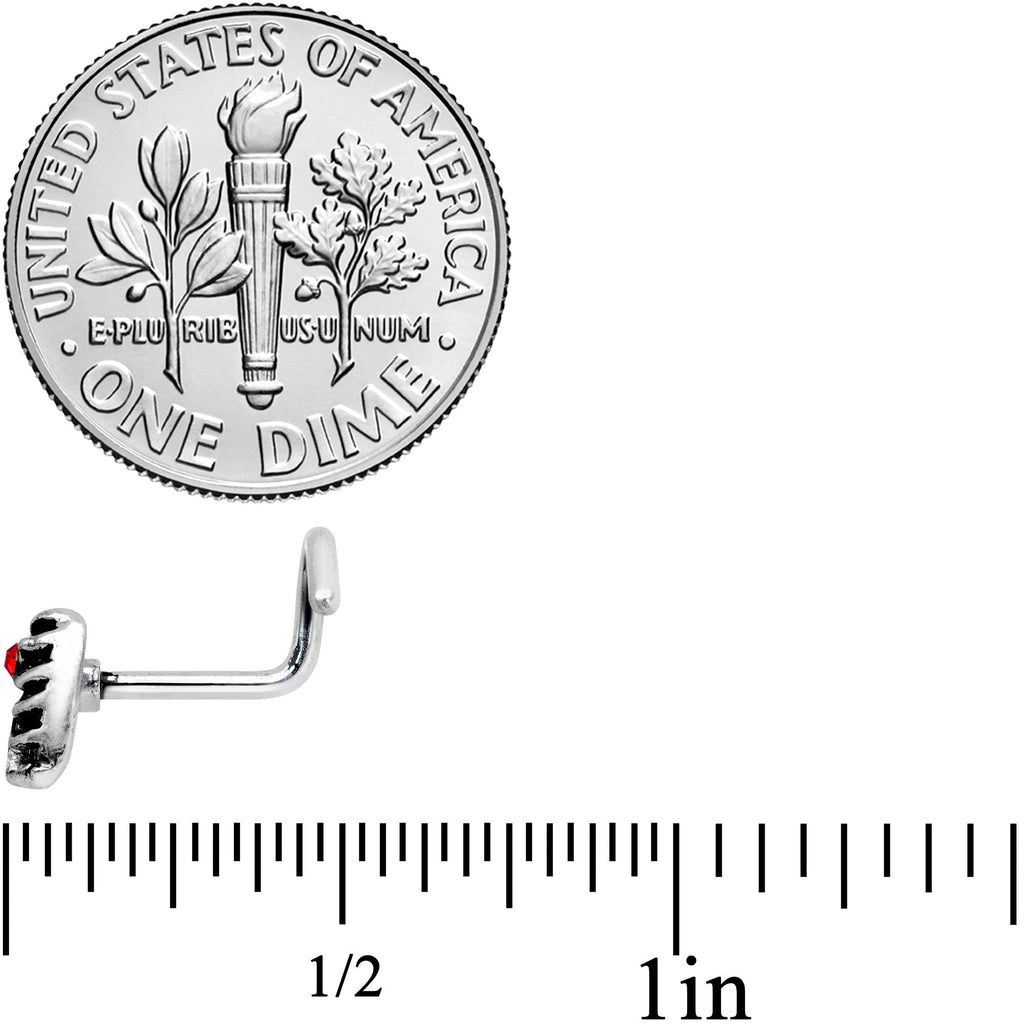 18 Gauge 5/16 Red CZ Gem Heart Skeleton Ribs Halloween Nose Screw