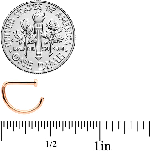 This 18 gauge nostril ring has everything you could possibly ask for! It's made with an 8mm rose gold tone PVD over solid grade 23 implant grade titanium semicircular ring with a flat disc end. Your nostril piercing is covered with this simple and stylish nose jewelry!Specifications